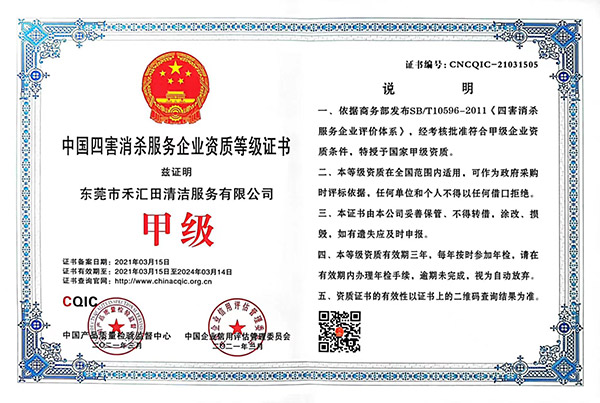 中國四害消殺服務企業(yè)資質等級證書